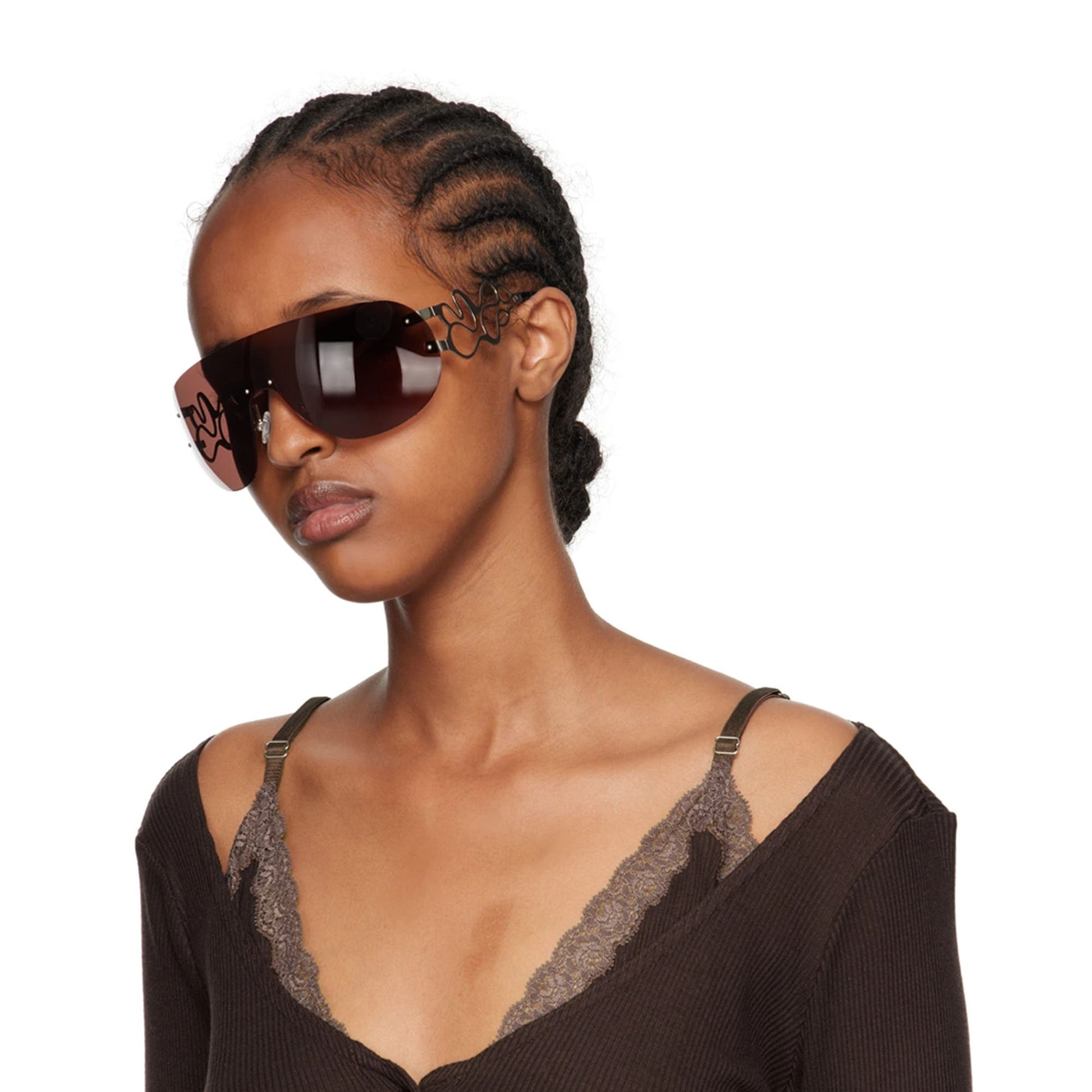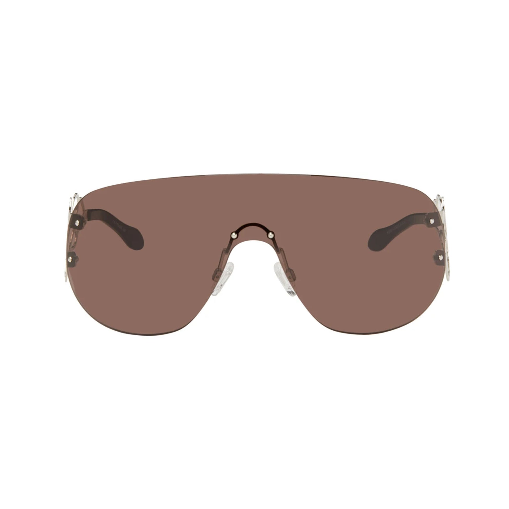 Shield-style rimless metal-frame sunglasses in silver-tone.
